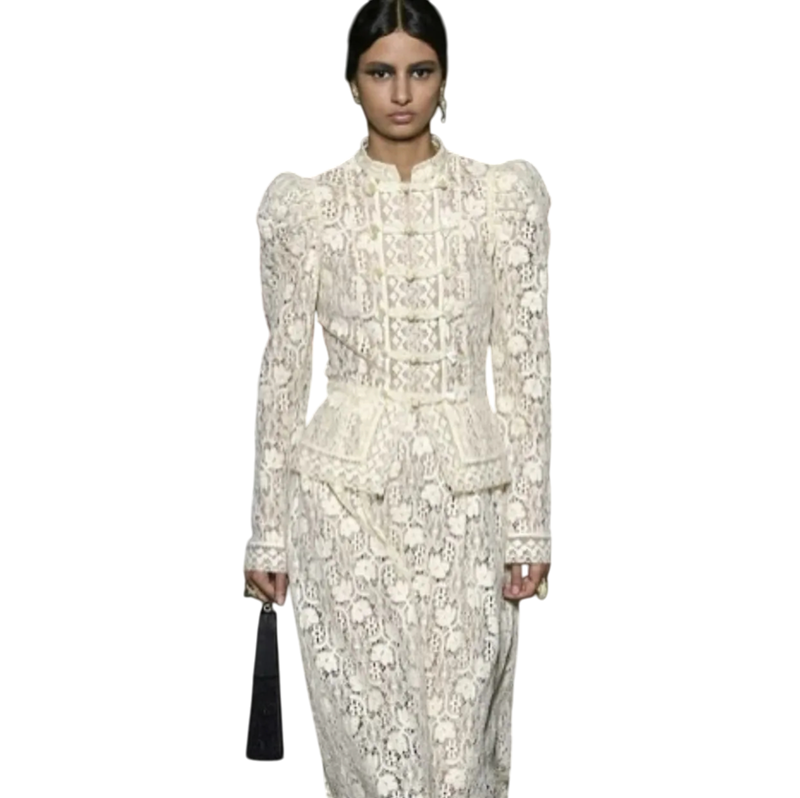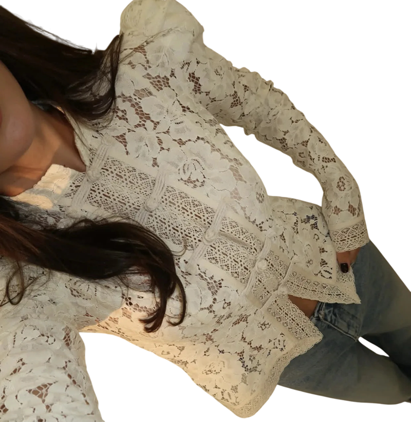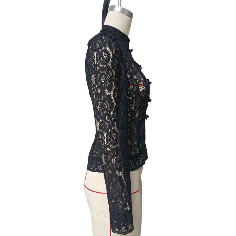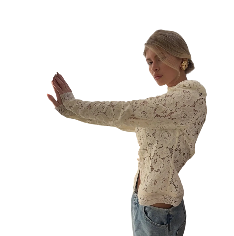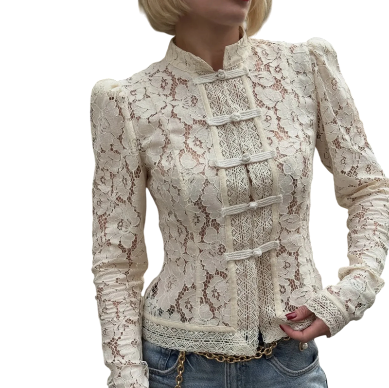 • Design: elegantní krajková struktura s klasickým límečkem a knoflíky