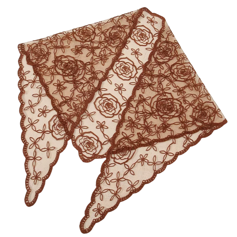 Stylový trojúhelníkový šátek z jemné krajky je dokonalým doplňkem pro ženy, které chtějí dodat svému outfitu nádech elegance a romantiky. Díky rozměru 130 x 45 cm poskytuje dostatek prostoru pro různé způsoby nošení – jako šátek na hlavu, kolem krku, do vlasů nebo jako čelenku. Jemný květinový motiv působí nadčasově a snadno se kombinuje s ležérním i elegantním oblečením. Lehký materiál je příjemný na dotek a vhodný pro celodenní nošení.