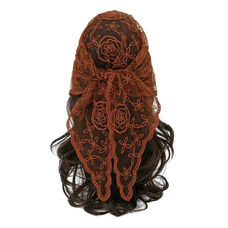 Elegantní krajkový šátek 130 x 45 cm Trojúhelníkový šátek na hlavu a krk Květinová vlasová čelenka Lehký kompaktní doplněk Čtyři roční období