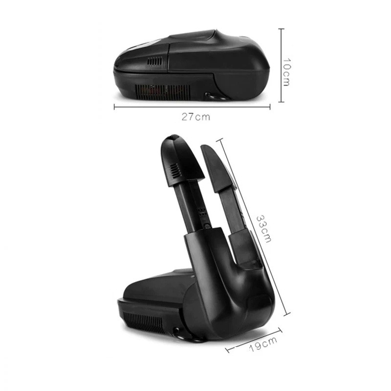Výkonný elektrický vysoušeč bot s časovačem, skládacími rameny a rovnoměrným ohřevem. Praktický pomocník v elegantní černé barvě.