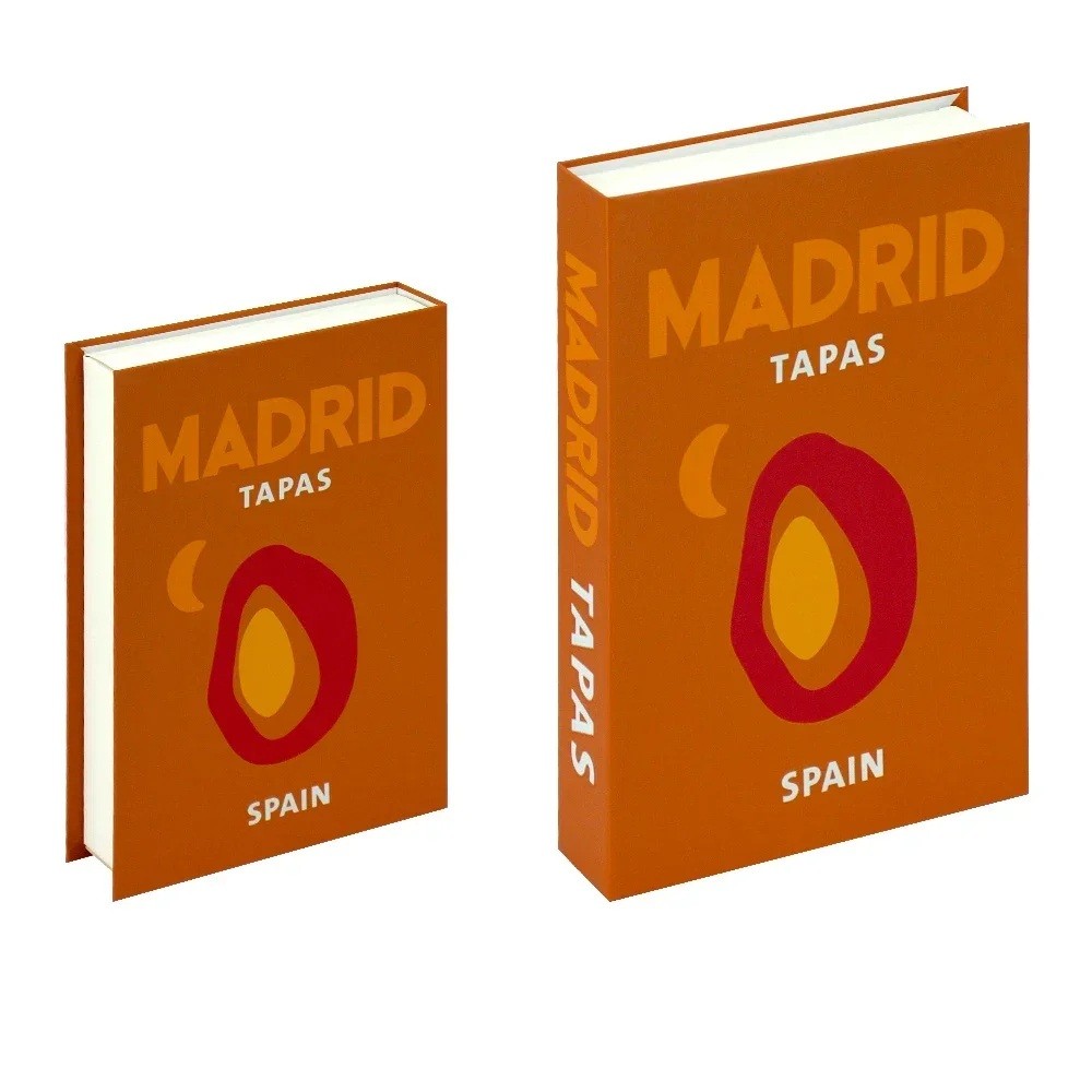 • Falešná kniha s designem Madrid Tapas, ideální pro dekoraci.