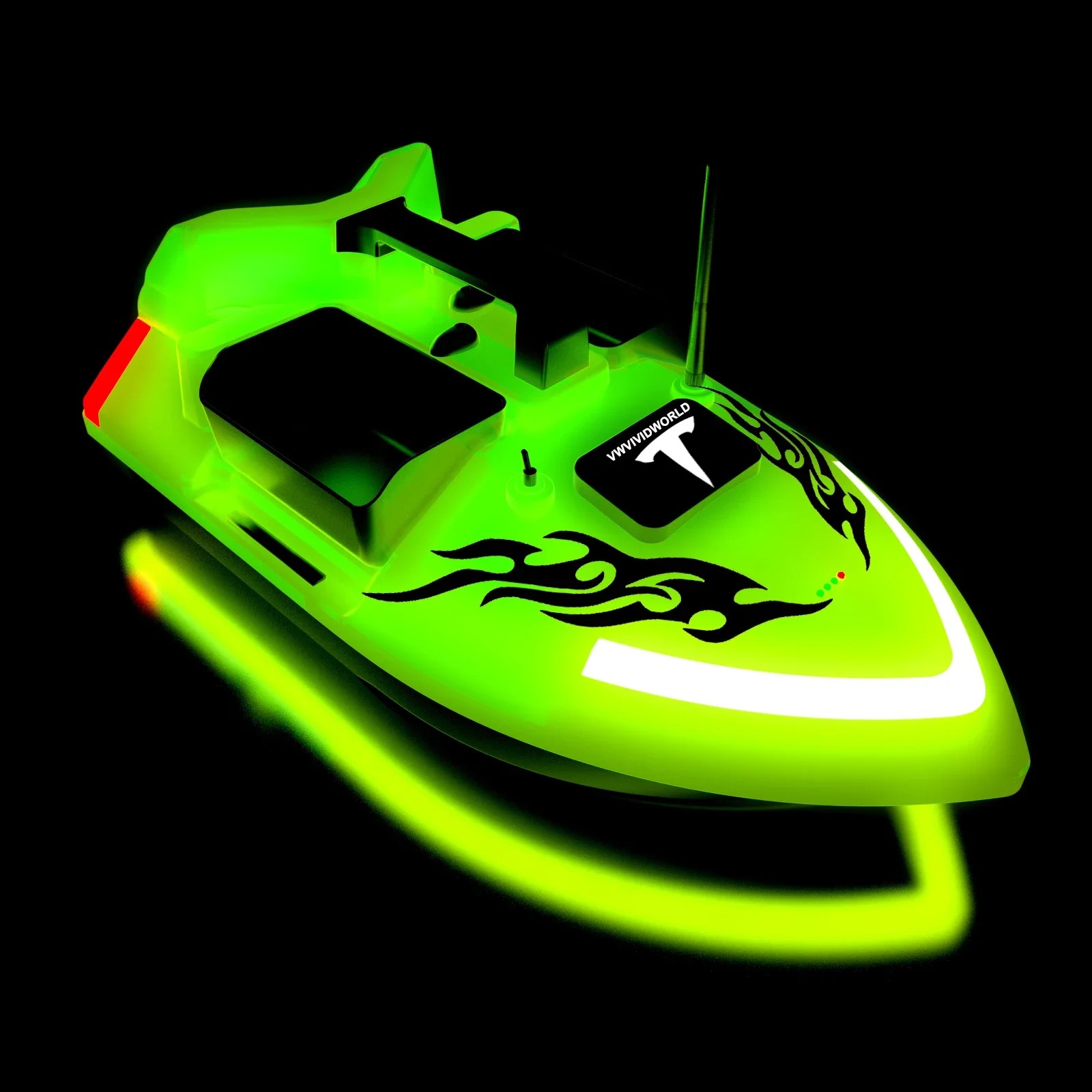 Tříkomorové uspořádání zásobníků umožňuje rozdělit krmení a pracovat s ním podle potřeby. Zadní část je navržena tak, aby bylo možné bezpečně přenést háček a následně uvolnit vlasec, což snižuje riziko zamotání. Pohon zajišťují dva motory s třílistými vrtulemi pro plynulou jízdu a dobrou ovladatelnost. Praktickou bezpečnostní funkcí je automatický návrat při nízkém stavu baterie nebo ztrátě signálu a také při překročení dosahu, takže se minimalizuje riziko ztráty loďky. Maximální ovládací vzdálenost je až 500 metrů, což pokryje většinu běžných situací na vodě.