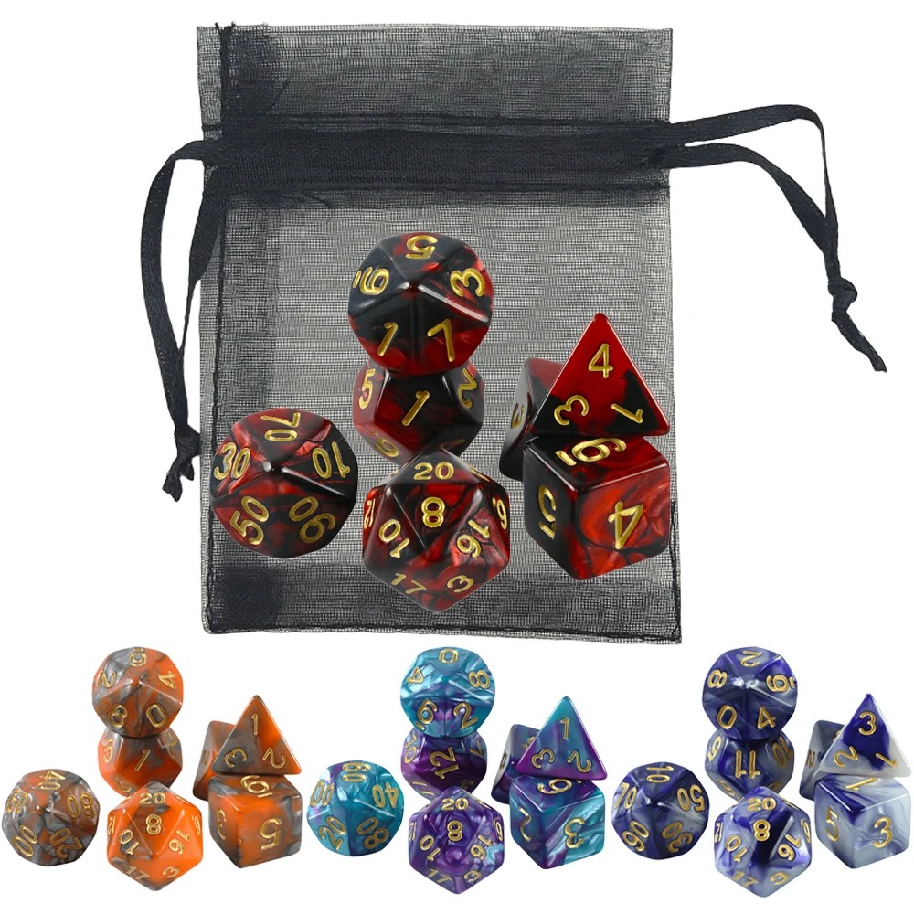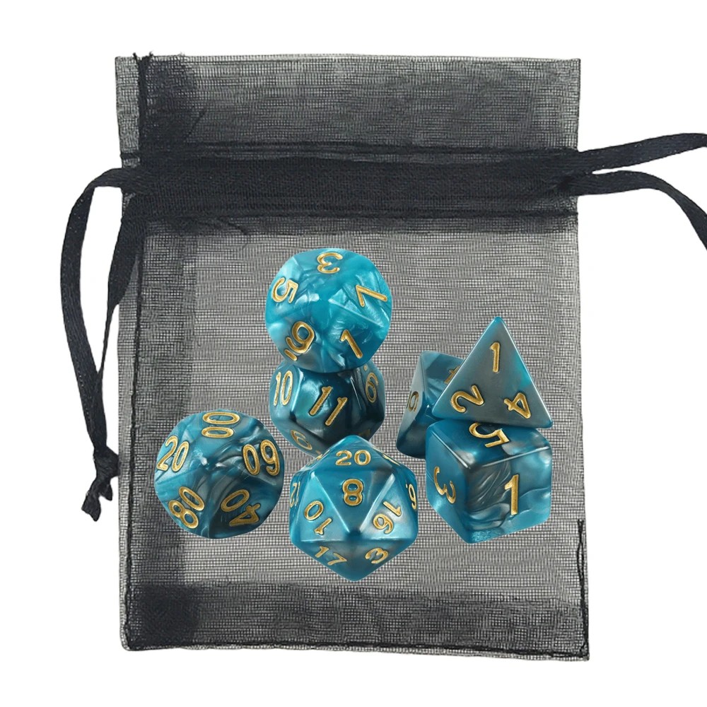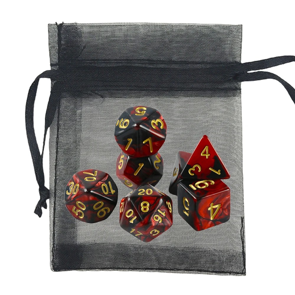 Hrací kostky 7 ks a pytlíček Mnohostěnné RPG kostky z akrylu pro Dračí doupě DnD Stolní fantasy hry