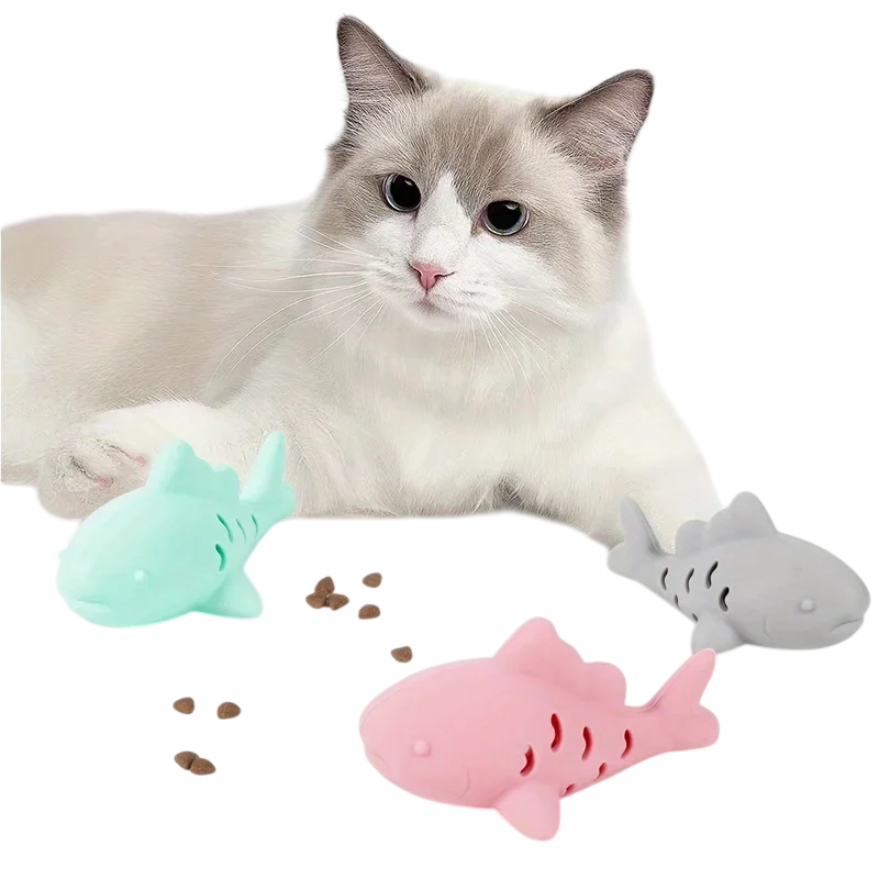 Interaktivní hračka pro kočky 12 x 7,7 x 5,6 cm Silikonová hračka ve tvaru ryby na pamlsky Mentální stimulace a hra