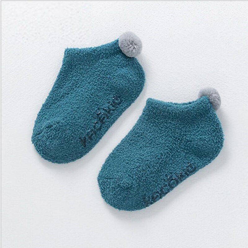 Roztomilé ponožky zdobené plyšovou bambulí.