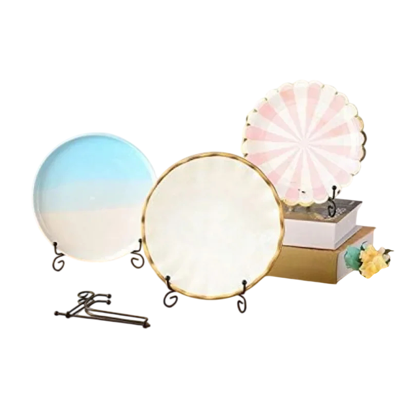 Univerzální kovový stojan pro vystavení dekorací je praktickým řešením pro prezentaci talířů, knih, fotografií, obrazů nebo sběratelských předmětů. Pevná kovová konstrukce poskytuje spolehlivou oporu vystaveným předmětům a zároveň působí moderním a elegantním dojmem. Minimalistické provedení stojanu nechává vyniknout samotný vystavený objekt a neruší jeho vzhled. Díky kompaktním rozměrům lze stojan snadno umístit na stůl, polici nebo do vitríny. Tento doplněk je vhodný pro dekorativní i profesionální prezentaci.