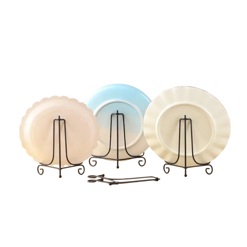 Pevný kovový stojan umožňuje stabilní vystavení talířů, obrazů, knih nebo fotografií. Elegantní řešení pro domácí dekorace i výstavní prezentace. Celý popis
