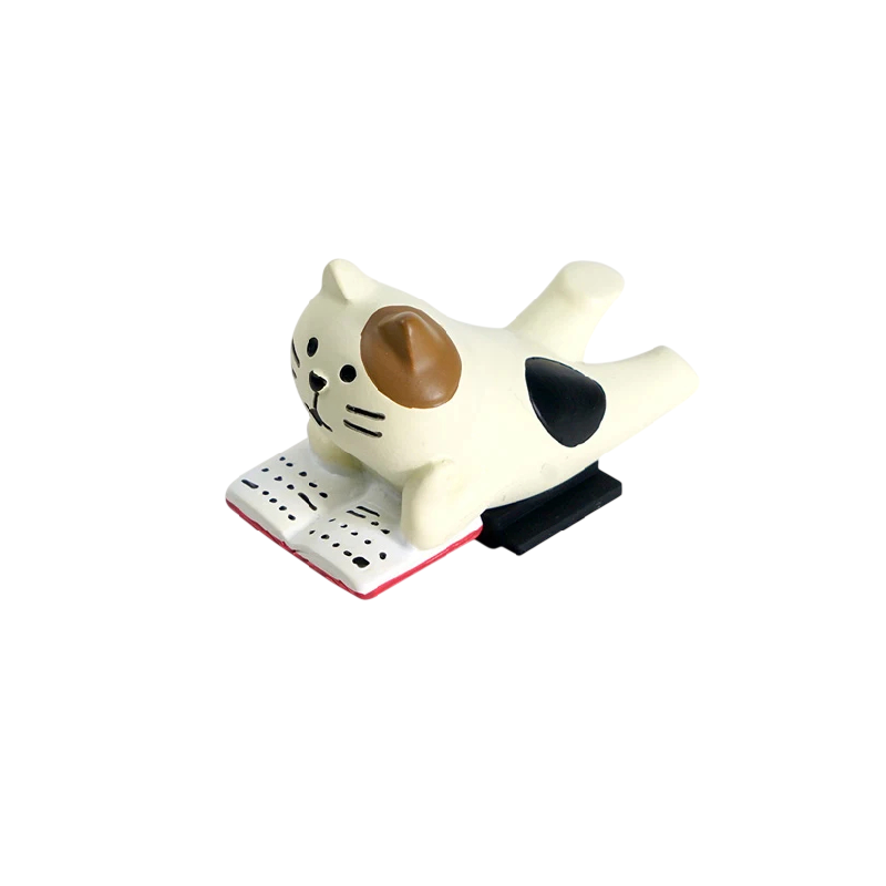 • Dekorativní motiv ležící kočky s knihou