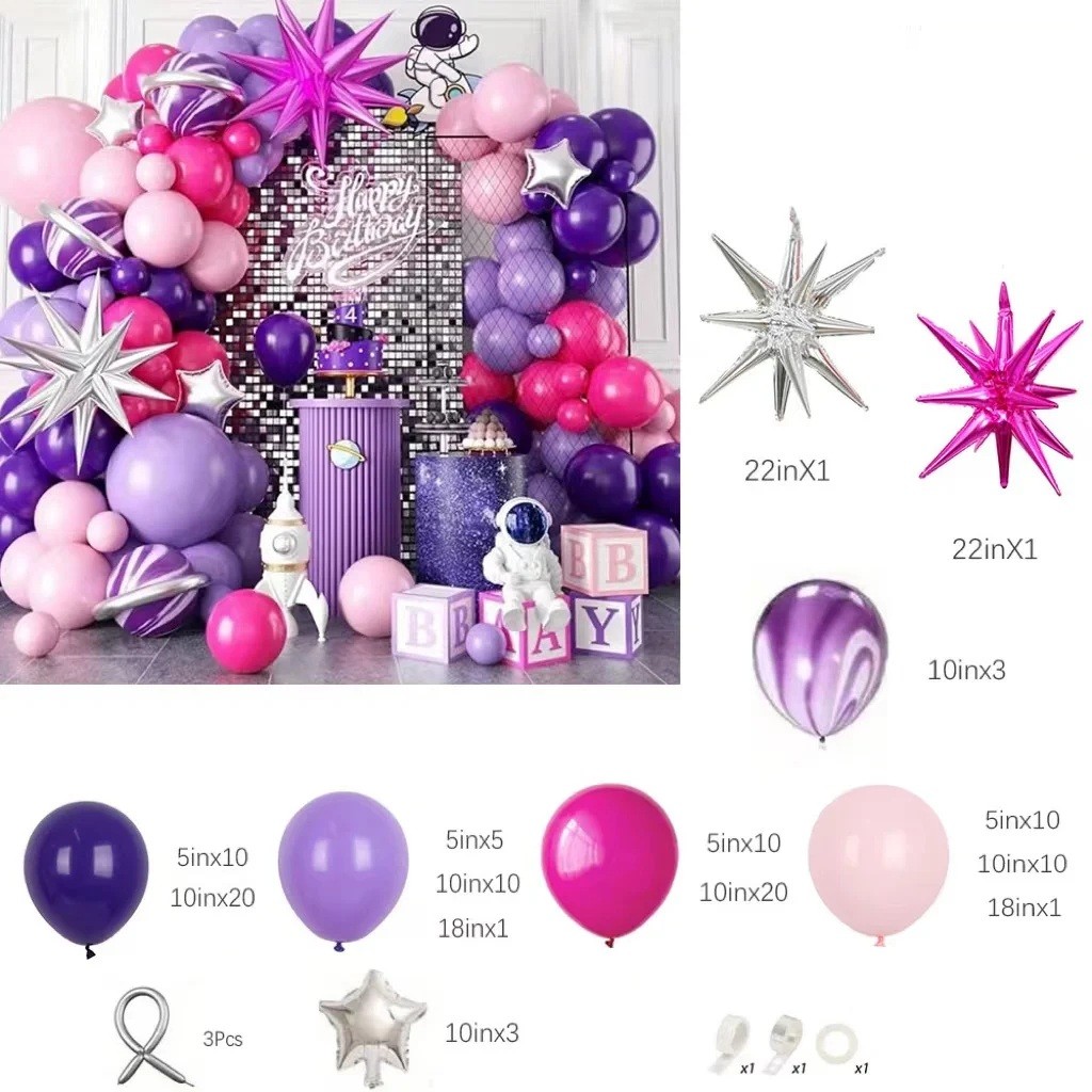 Latexové balónky girlanda sada 111 ks dekorace 12,7–45,7 cm latex růžovo-fialová narozeninová a párty výzdoba balónkový oblouk