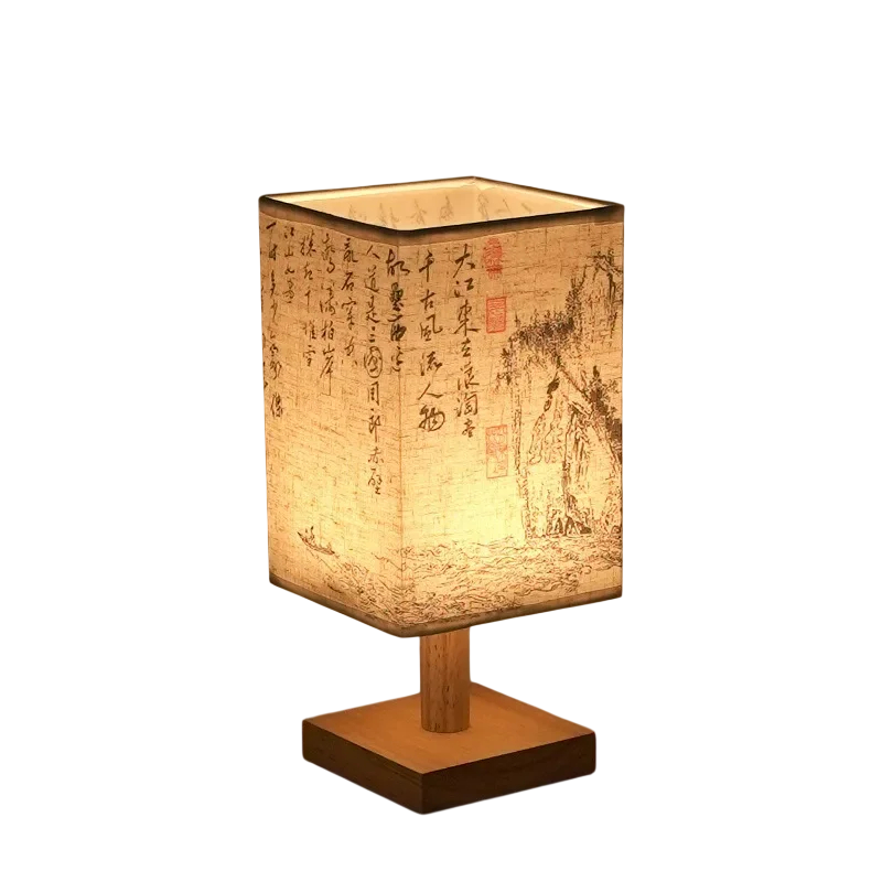LED stolní lampa 27 x 12 x 10 cm Čínský styl Dekorativní osvětlení s lněným stínidlem a dřevěným stojanem