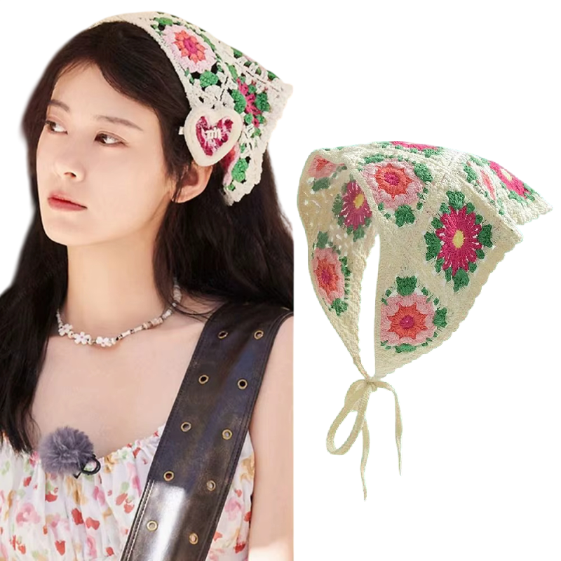 Úvodní strana Úvodní strana Oblečení a doplňky Dámské Dámské doplňky Dámské šály a šátky Letní háčkovaný trojúhelníkový šátek Květinový design Vlasový šátek pro ženy Lehká roztomilá pokrývka hlavy na jaro a cestování