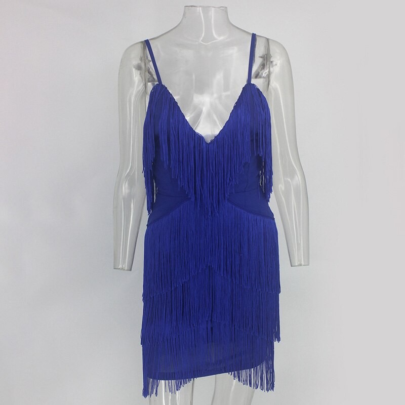 Luxusní dámské mini šaty zdobené třásněmi.