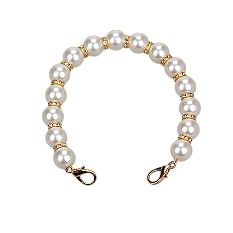Perlový řetízek je vyroben z dekorativních perel doplněných o kovové mezičlánky, které dodávají doplňku výraznější a elegantní charakter. Díky rozměru 30 x 1,6 cm je poutko ideální jako krátké držadlo nebo stylový dekorativní řetízek na kabelku. Praktické karabinové zapínání umožňuje rychlé a pohodlné připevnění ke kabelce, batohu nebo klíčům.