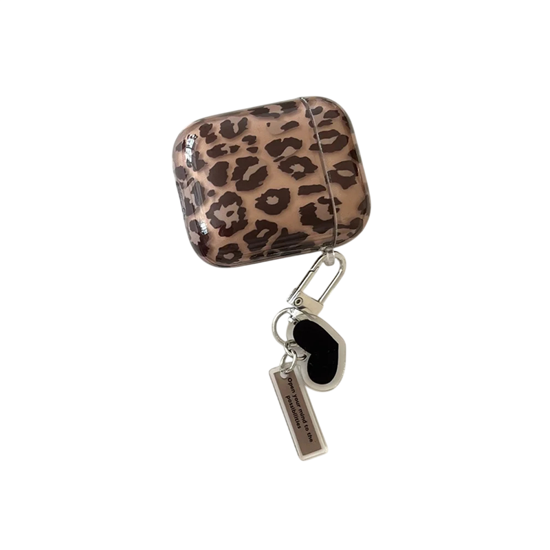 Stylové silikonové pouzdro pro AirPods 1 a 2 s leopardím vzorem a přívěskem ve tvaru srdíčka. Ochrana a elegance pro vaše sluchátka. Celý popis