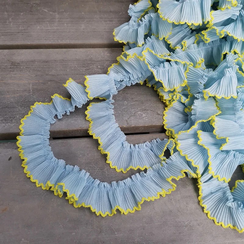Modrá krajková stuha ze šifonu s ozdobným okrajem je elegantní textilní doplněk vhodný pro šití, zdobení oděvů i dekorací. Jemná modrá barva dodává stuze svěží a dekorativní vzhled, který se skvěle hodí pro různé kreativní projekty. Díky lehké šifonové struktuře působí stuha velmi jemně a stylově.