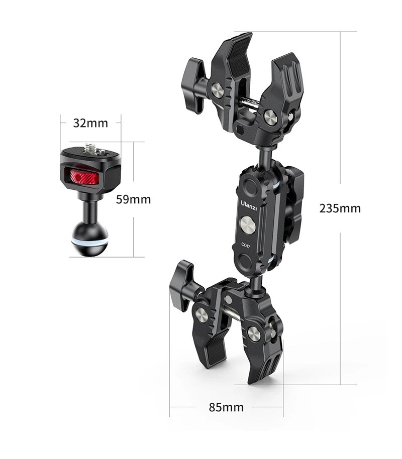 Svěrný mechanismus umožňuje pevné uchycení na různé povrchy, jako jsou tyče, desky nebo konstrukční prvky. Kulová hlava poskytuje plynulé nastavení úhlu a usnadňuje přesné nasměrování příslušenství. Rozměry 23,5 × 8,5 cm zajišťují stabilitu a zároveň zachovávají skladnost při přenášení. Díky rychloupínací destičce lze zařízení snadno odejmout nebo znovu připevnit bez složité manipulace. Držák je určen pro uživatele, kteří hledají flexibilní a praktické řešení pro svou techniku.