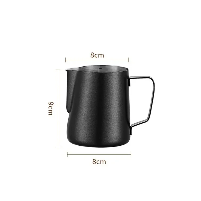 Nerezová konvička na šlehání mléka 350 ml 9 × 8 cm Profesionální džbánek z nerezové oceli na cappuccino latte art domácí i baristické použití