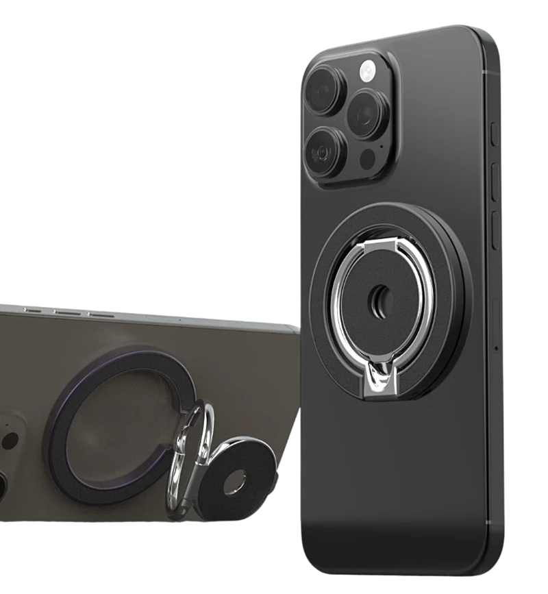 Oboustranný stojan na telefon s otvorem a magnetickým kroužkem je navržen pro maximální praktičnost při každodenním používání mobilního telefonu. Díky kompaktním rozměrům 5,7 x 5,8 cm je nenápadný, lehký a snadno přenosný. Magnetický kroužek umožňuje rychlé a bezpečné uchycení telefonu bez složité manipulace a zajišťuje stabilitu při používání. Praktický centrální otvor usnadňuje držení, manipulaci i zavěšení stojanu podle potřeby. Oboustranné provedení nabízí více možností polohování telefonu při práci, sledování videí nebo videohovorech.