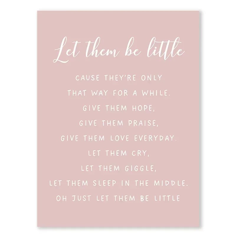 Obraz na plátně 40 x 50 cm Dětský růžový citát Let them be little Motivační dekorace Polyesterové plátno Bez rámu Do holčičího pokoje