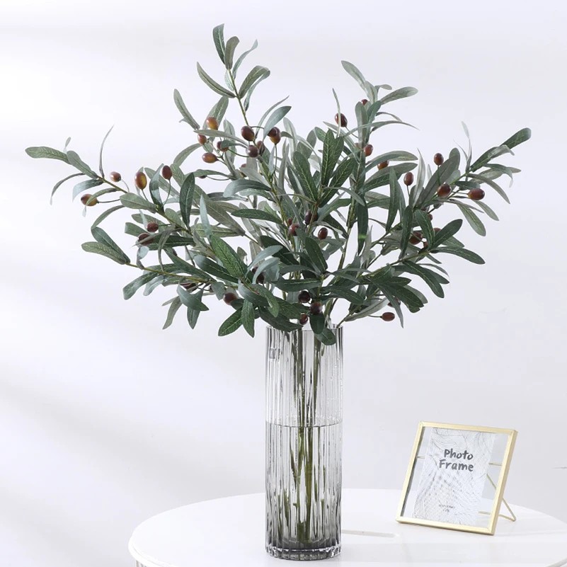 Realistická umělá olivová větev vhodná do vázy i dekorativních aranžmá. Elegantní doplněk interiéru s přirozeným vzhledem. Celý popis
