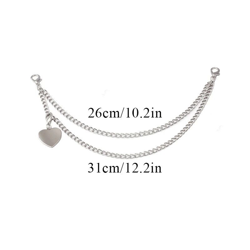 Ozdobný řetízek na kabelku dvojitý s přívěskem srdíčka 26 x 31 cm Kovová slitina Stříbrný dekorativní řetěz na kabelku náhradní krátké ucho