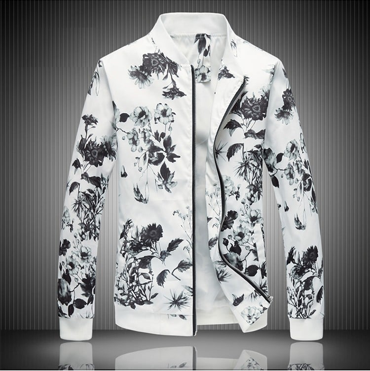 Oblečte se do této krásné bundy s květinami v bílé barvě.