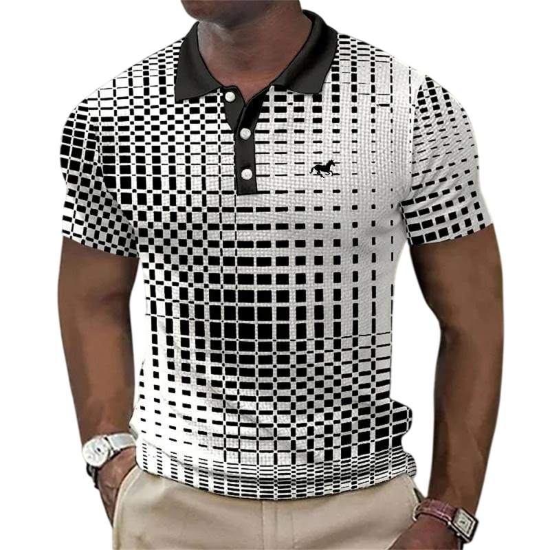 Tato pánská polokošile je navržena pro muže, kteří hledají kombinaci upraveného vzhledu a každodenního komfortu. Klasický límeček s knoflíky dodává tričku elegantní charakter, zatímco krátký rukáv zajišťuje pohodlí při celodenním nošení. Jednoduché vzorování je doplněno o potisk koně na hrudi, který dodává polokošili osobitý styl. Polyesterový materiál je lehký, příjemný na dotek a vhodný pro běžné denní aktivity. Díky univerzálnímu designu se polokošile snadno kombinuje s různými typy kalhot i obuvi.