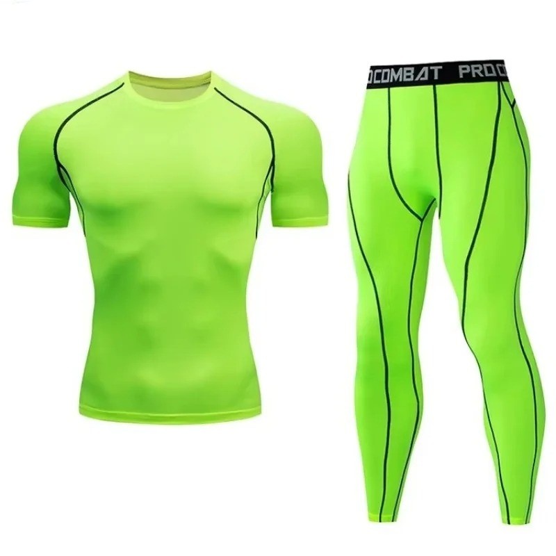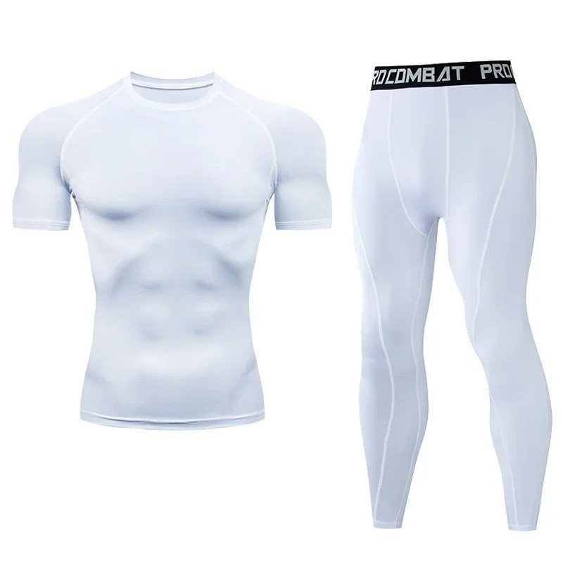 Pánská souprava s legínami a tričkem s krátkým rukávem a výstřihem do O, vyrobená z polyesteru, ideální pro pohodlné nošení a sportovní aktivity. Celý popis