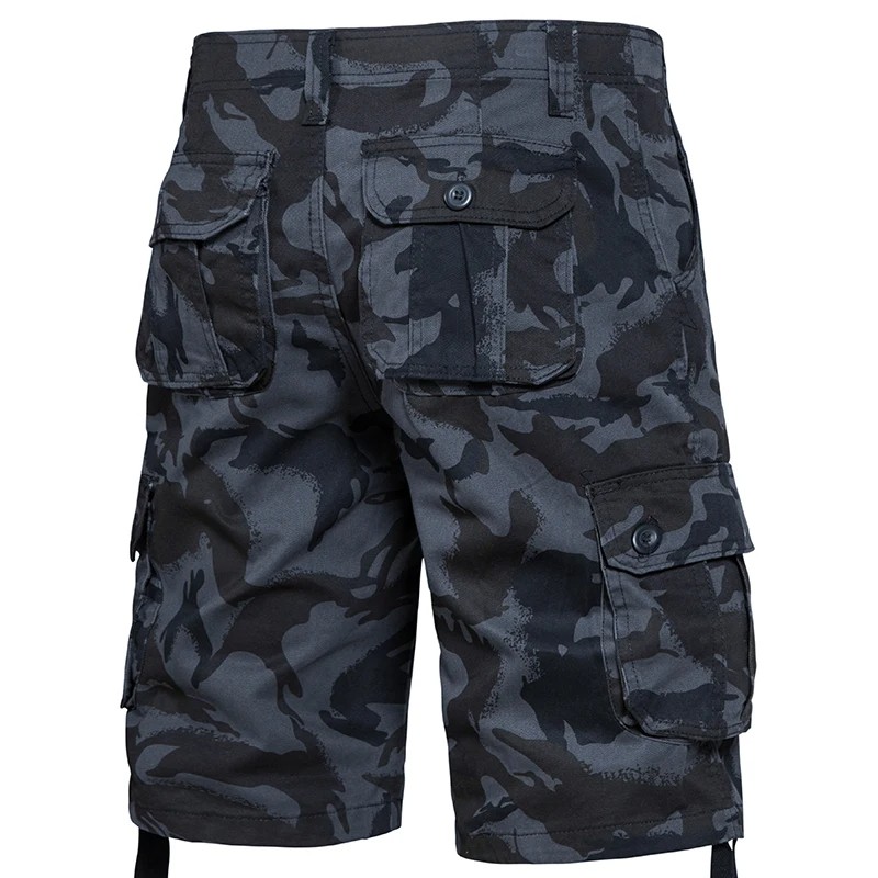 Pánské maskáčové outdoorové kraťasy z bavlny Prodyšné krátké kalhoty s boční kapsou Délka ke kolenům Pohodlné letní šortky na turistiku a volný čas