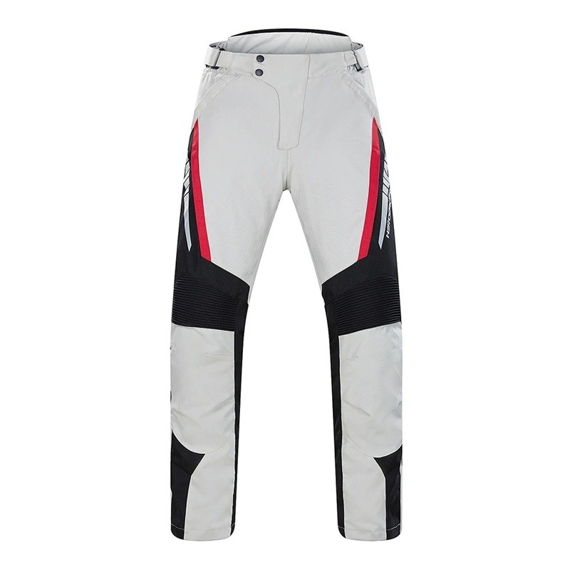 Pánské motorkářské kalhoty jsou navrženy pro jezdce, kteří hledají funkční oblečení do proměnlivých podmínek během běžné i delší jízdy. Vnější část je vyrobena z nylonového materiálu, který působí pevně a zároveň zajišťuje komfort při nošení. Díky nepromokavému provedení pomáhají kalhoty chránit před deštěm a vlhkostí, což oceníte při nepředvídatelném počasí. Současně jsou odolné proti větru, čímž přispívají k lepšímu tepelnému komfortu během jízdy. Praktické zapínání na zip usnadňuje oblékání i svlékání.