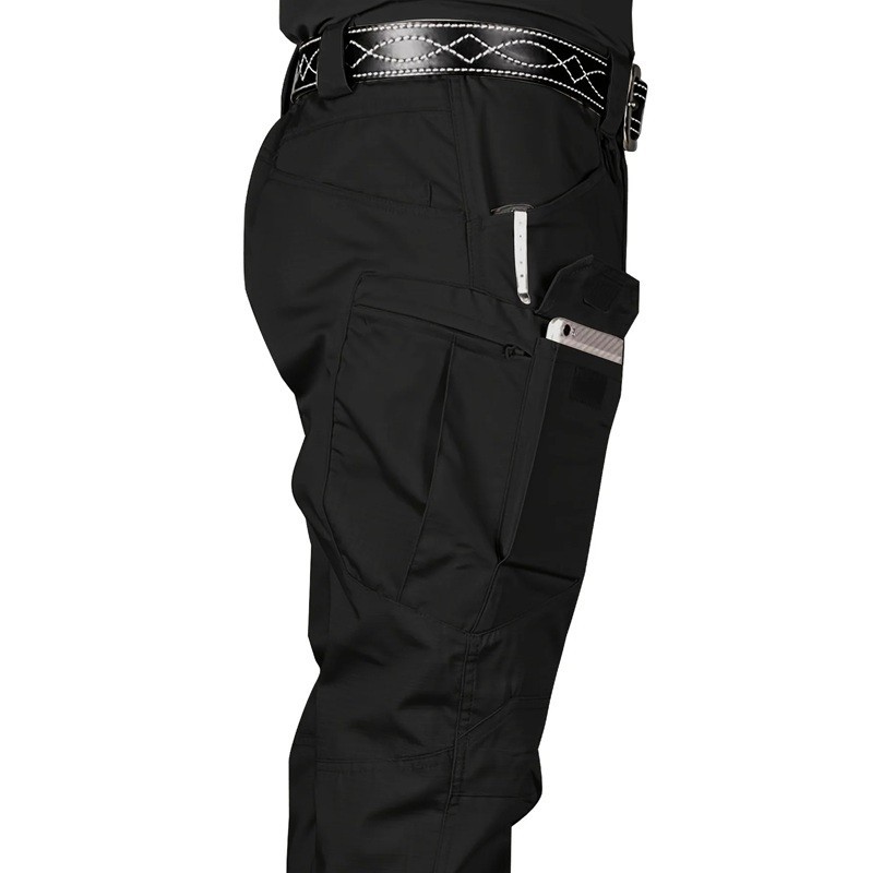 Voděodolné pánské taktické kalhoty s více kapsami, ideální pro outdoorové aktivity, turistiku i práci v náročných podmínkách. Celý popis