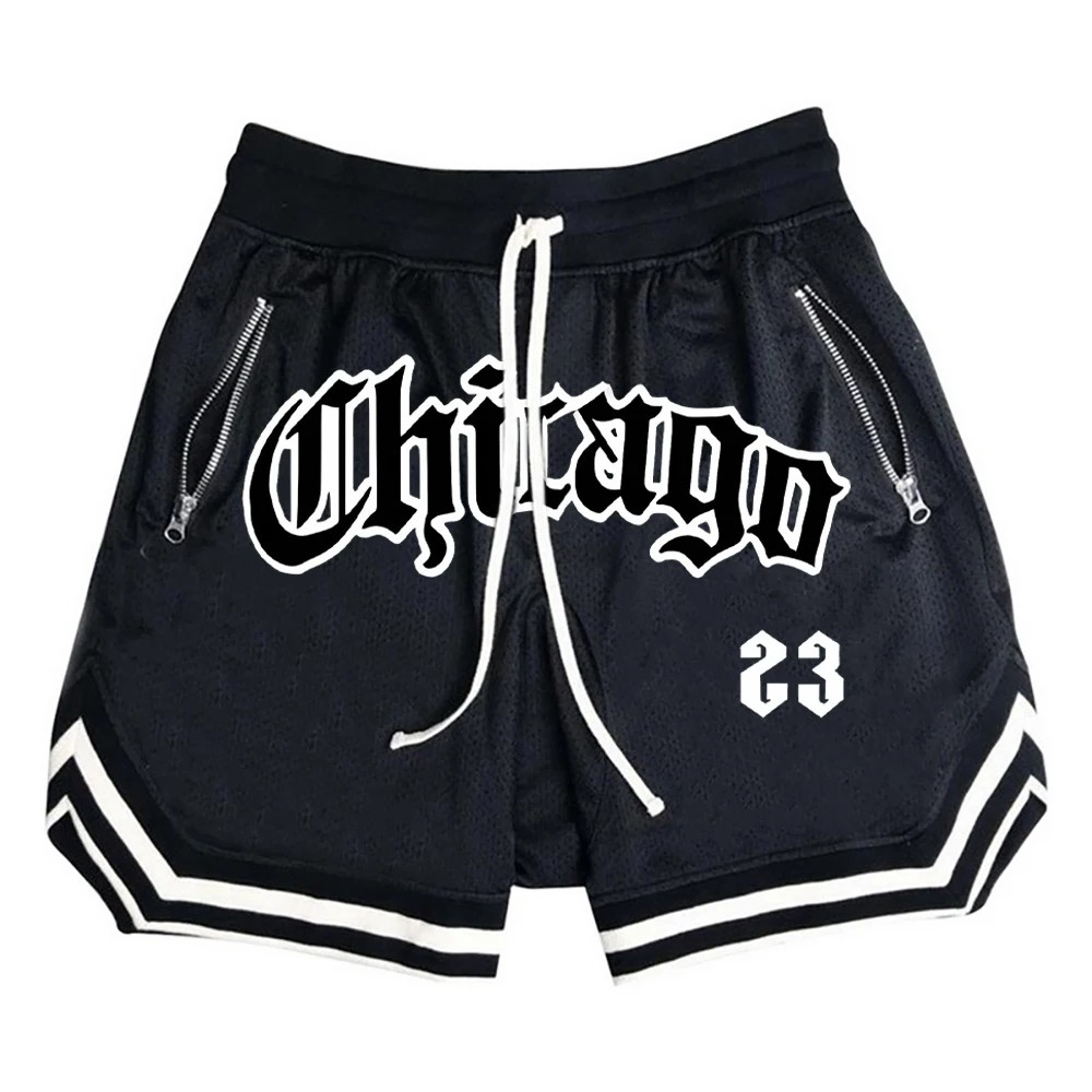 Pánské rychleschnoucí sportovní kraťasy Chicago Basketbalové fitness šortky s kapsami na zip Volné tréninkové kraťasy na léto