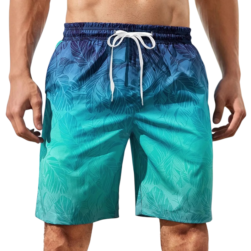 Pánské šortkové plavky Duhovaný design Potisk listů Tkanička v pase Rychleschnoucí polyester Lehký materiál Letní pláž bazén
