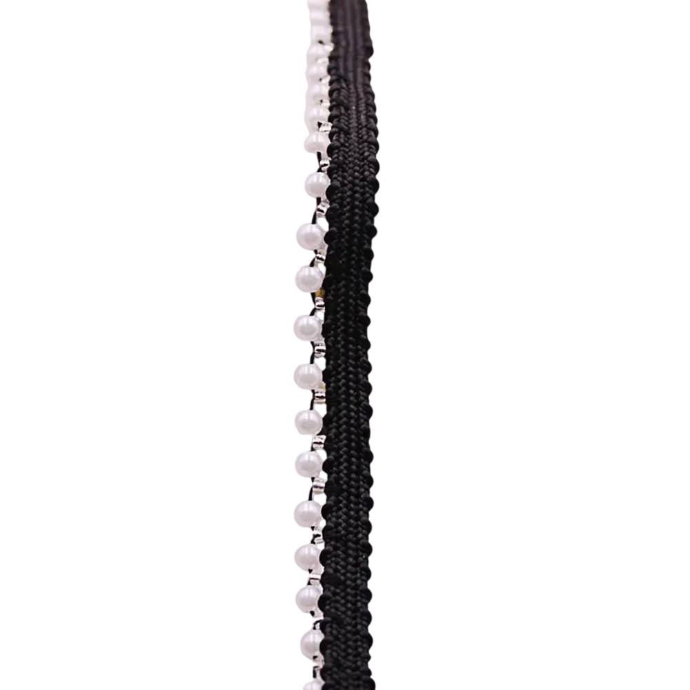 Dekorativní stuha s imitací perel vhodná pro zdobení oděvů, svatební dekorace, kreativní DIY projekty, scrapbooking i elegantní dekoraci dárků. Celý popis