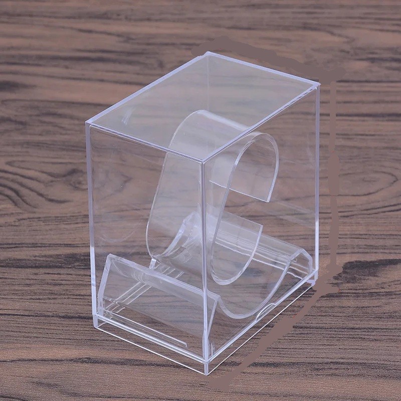Plastová krabička na hodinky s průhledným krytem cca 5,2 x 8,8 x 7,5 cm úložný box a stojan na hodinky a šperky vitrína