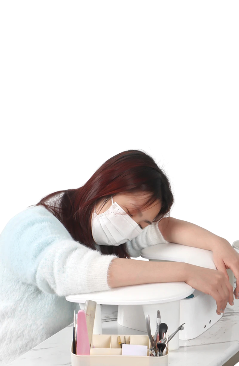 Ergonomická opěrka ruky s 15° sklonem z PU materiálu zajišťuje pohodlí při práci, snadnou údržbu a stabilní oporu při modeláži nehtů. Celý popis