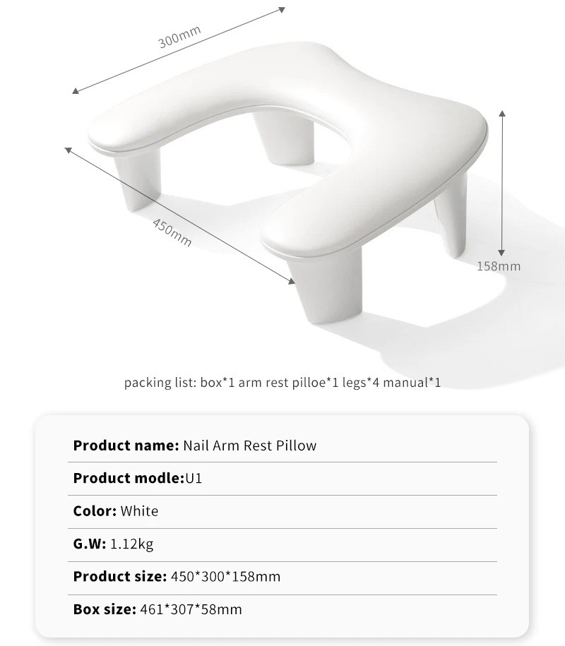 Díky přenosnému provedení lze opěrku snadno přenášet mezi pracovišti nebo uklidit po skončení práce. Povrch je navržen tak, aby se dal rychle očistit od gelu, prachu či dezinfekčních prostředků. Stabilní konstrukce zajišťuje bezpečné používání i při delší práci. Moderní a jednoduchý design se hodí do každého nehtového studia a podporuje profesionální vzhled pracovního prostoru.