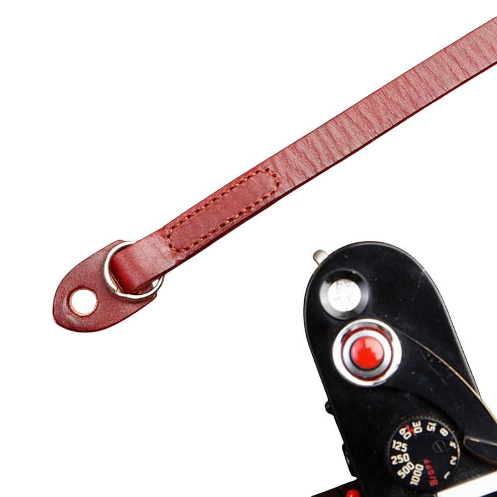 • Kožené zakončení pro pevné a bezpečné uchycení fotoaparátu