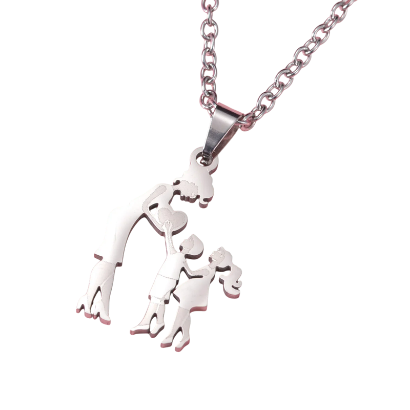 Tento nádherný řetízek s přívěškem maminky se synem a dcerou je dokonalým symbolem rodinné lásky, něhy a spojení. Vyroben z kvalitní nerezové oceli, která zaručuje dlouhou životnost a odolnost vůči opotřebení, představuje ideální doplněk pro každodenní nošení i slavnostní příležitosti. Díky elegantnímu designu se stane srdcem každého outfitu a krásným vyjádřením vztahu mezi matkou a dětmi.