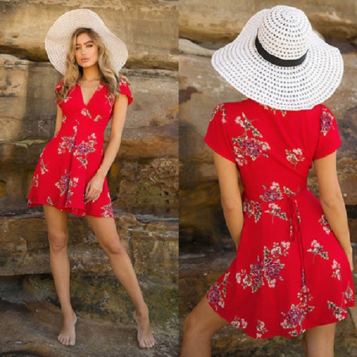 Dámské krátké letní šaty s romantickým květinovým potiskem.