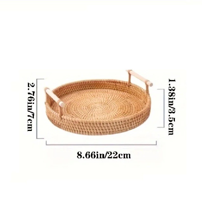 Košík lze využít na odkládání klíčů, mobilního telefonu, hodinek, šperků, kosmetiky nebo menších dekorací. Skvěle se hodí do předsíně jako místo pro každodenní drobnosti, do obývacího pokoje na konferenční stolek nebo do ložnice na komodu. Průměr 22 cm poskytuje dostatek prostoru, aniž by tác působil robustně nebo rušivě. Ruční tkaní dodává každému kusu osobitý vzhled a jemnou strukturu. Díky tomu je každý tác originální a nenápadně oživí interiér.
