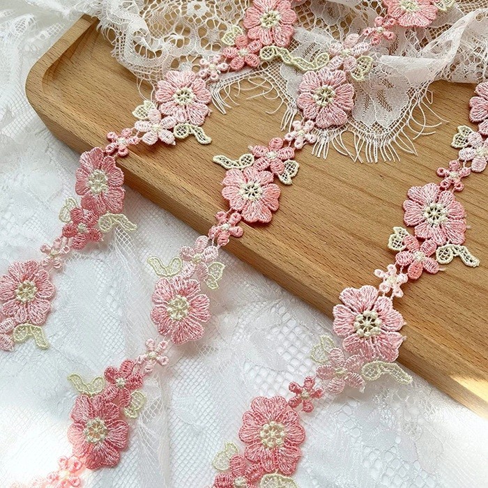 Růžová květinová stuha s výšivkou 91 cm Polyesterová dekorační krajková stuha pro zdobení šatů oděvů módních doplňků
