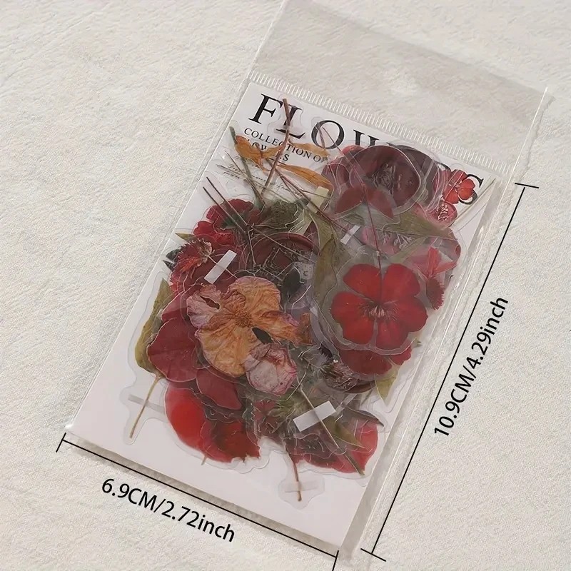 Tato sada dekorativních květin obsahuje 40 ks barevných sušených květů, které jsou ideální pro všechny kreativní projekty. Květy jsou baleny v praktickém balení o rozměrech 6,9 × 10,9 cm, což je ideální velikost pro použití při tvorbě deníků, albumů a dalších ručních prací. Květy jsou pečlivě sušené a zachovávají si svůj přirozený tvar i barvu, což je činí perfektními pro různé dekorační účely.