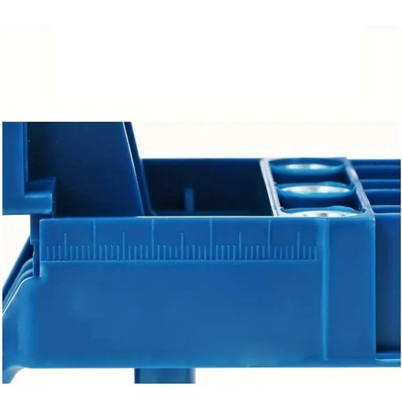 Pomůcka se automaticky vycentruje na hraně materiálu a zajišťuje přesné vedení vrtáku kolmo k povrchu. To výrazně snižuje riziko nepřesností a zajišťuje jednotné výsledky i při opakovaném vrtání. Je vhodná pro spojování hran, čelních ploch i rohových spojů, což z ní činí univerzální nástroj pro výrobu nábytku, polic, rámů a dalších konstrukcí.