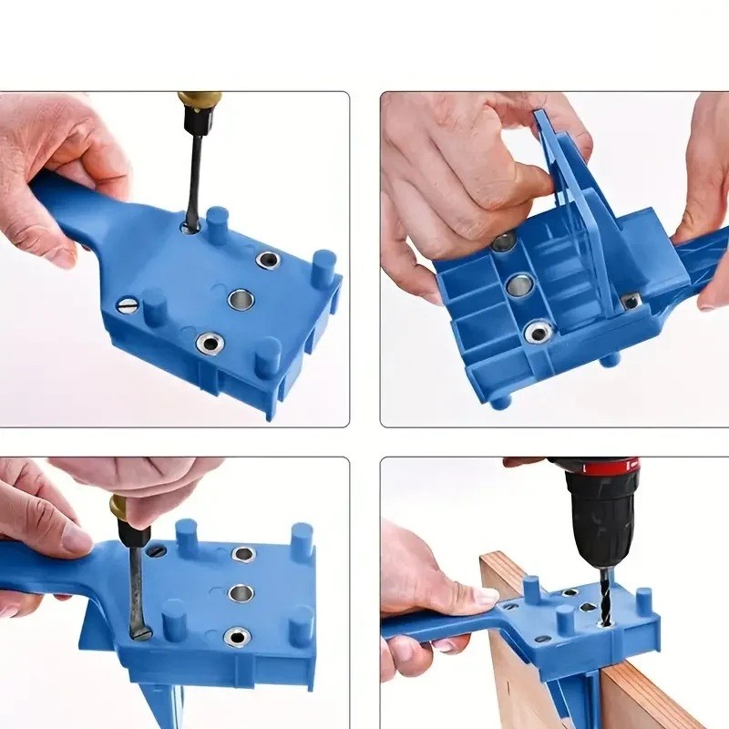 Díky možnosti vrtání otvorů pro tři nejčastější průměry kolíků lze nástroj přizpůsobit různým projektům bez nutnosti výměny celé pomůcky. Stabilní konstrukce umožňuje bezpečné uchycení k materiálu a pohodlné ovládání jednou rukou. Pomůcka je kompatibilní s běžnými ručními i elektrickými vrtačkami.