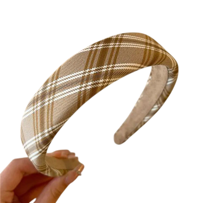 Široká látková čelenka do vlasů Univerzální velikost Károvaný kostkovaný vzor Elastická módní čelenka Dámský vlasový doplněk