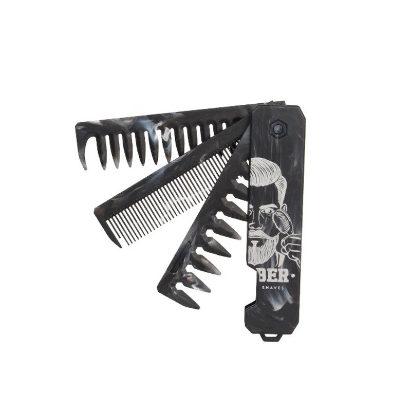 Tento čtyřfunkční skládací hřeben je navržen jako praktický nástroj pro úpravu vlasů i vousů kdykoliv během dne. V kompaktním těle najdete hned čtyři typy zubů: husté pro přesné česání, široké pro snadné rozčesání, tvarovací pro styling a zkrácený zub pro snadné oddělování pramenů. Díky tomu jde o univerzální pomůcku, kterou využijete doma i na cestách.