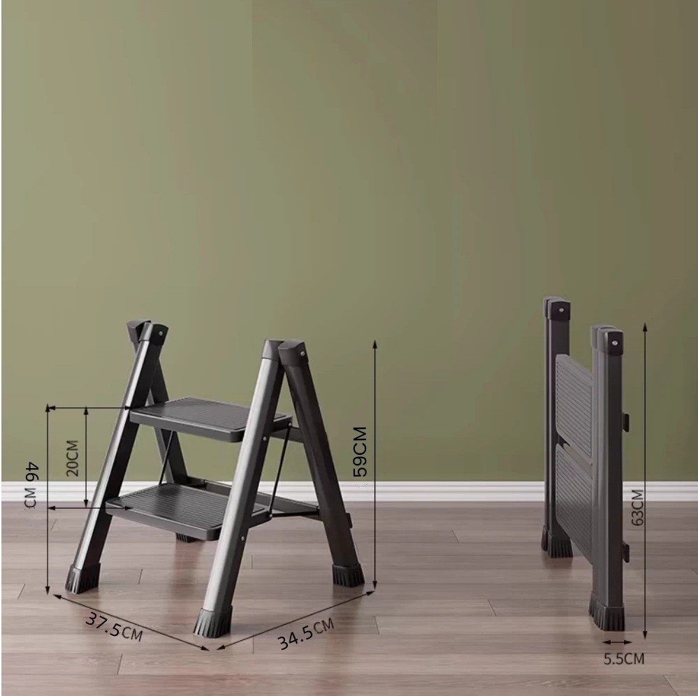 Skládací schůdky se dvěma stupni z uhlíkové oceli 37,5 x 34,5 x 55 cm Stabilní domácí stolička nosnost 150 kg