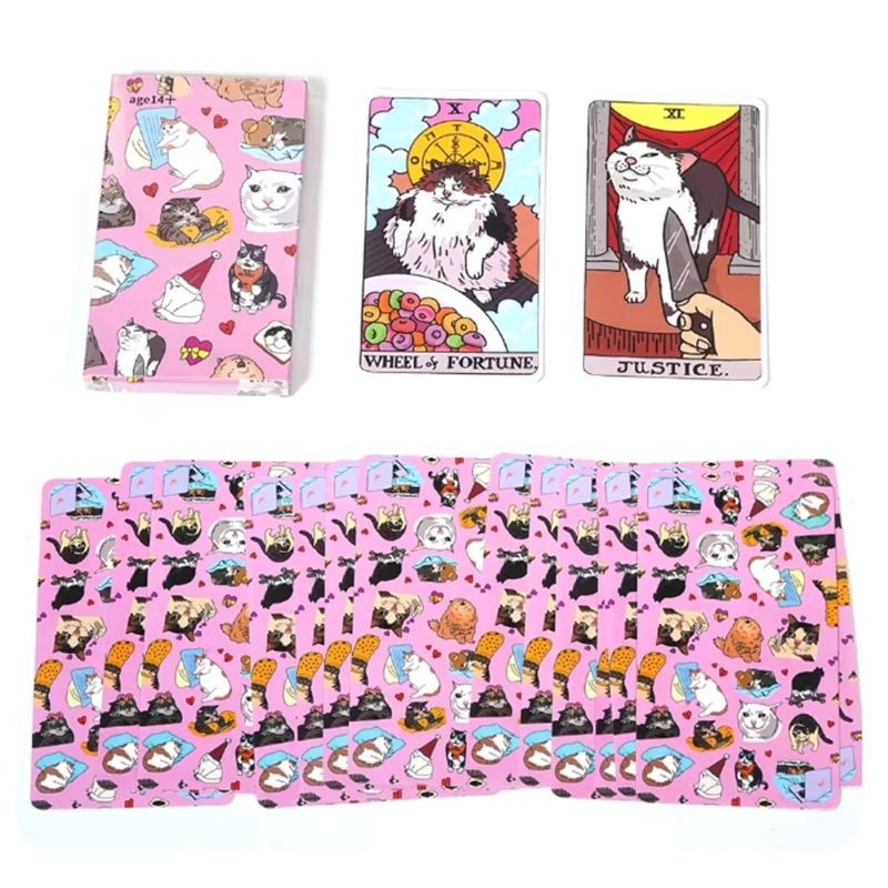 Tarotové karty s kočičím motivem zábavný balíček 22 karet 10,5 x 6,5 cm ilustrované růžové tarot karty s kočkami pro výklad