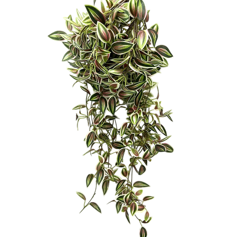 Umělá převislá tradeskancie o délce 75 cm je elegantní dekorací, která dodá interiéru svěží a přirozený vzhled bez nutnosti jakékoli údržby. Díky liánovitému růstu a bohatému převisu působí velmi realisticky a vytváří dojem živé rostliny. Jemně tvarované listy s barevnými přechody dodávají dekoraci hloubku a vizuální zajímavost. Rostlina je ideální volbou pro moderní, boho i minimalistické interiéry. Skvěle vynikne v závěsném květináči, na polici i ve vyšších vázách.